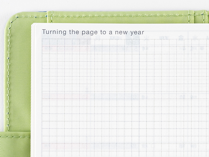 手帳を使いはじめるときのウォーミングアップ用ページです。前の年の出来事を振り返ったり、新年の決意を書いたり、古い手帳から引き継ぐ内容を記したりなど、自由にお使いください。左右の端には、手帳切り替え時期2ヶ月分のカレンダーを掲載しています。