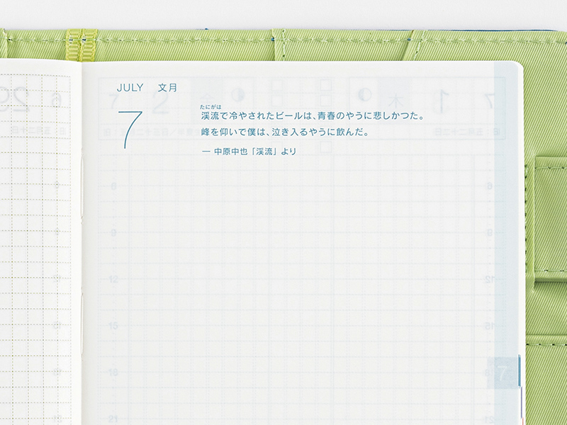 各月のあたまに用意したメモスペースです。文学作品や詩歌から抜き出した「月の言葉」を、毎月ひとつずつ掲載しています。