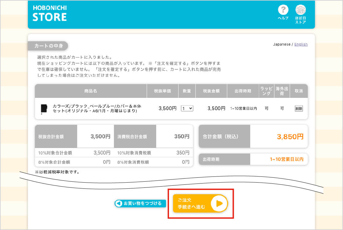 「ほぼ日ストアヘルプ お申込し込みの流れ」から