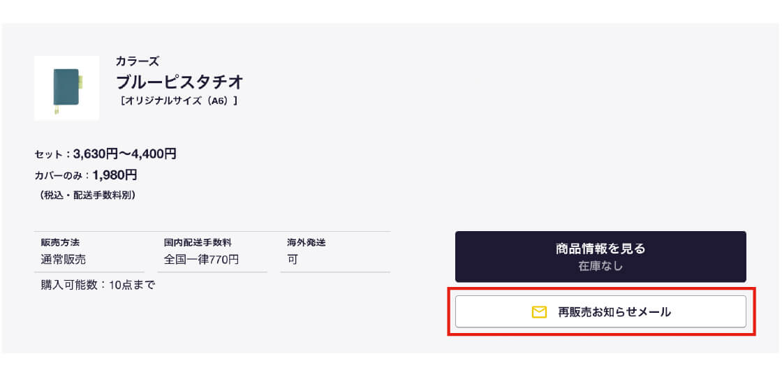 「再販売お知らせメール」にご登録いただくと、
