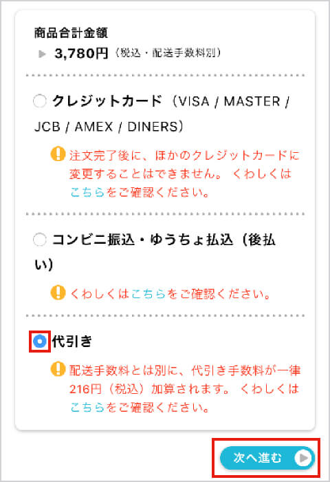 代引き手数料を一律220円(税込)申し受けます。お支払いは現金のみです。