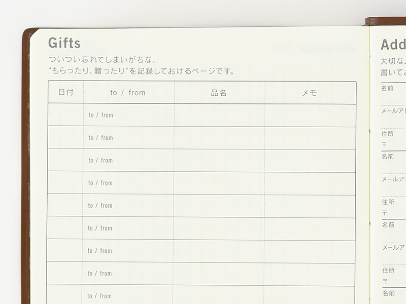 書いておけるアドレス帳です。