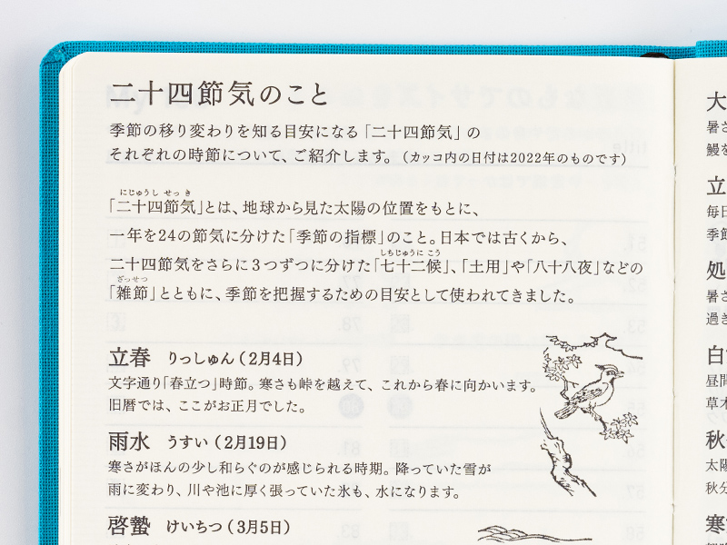 「立春」や「冬至」など、季節の移り変わりを知る目安になる「二十四節気」について解説しています。