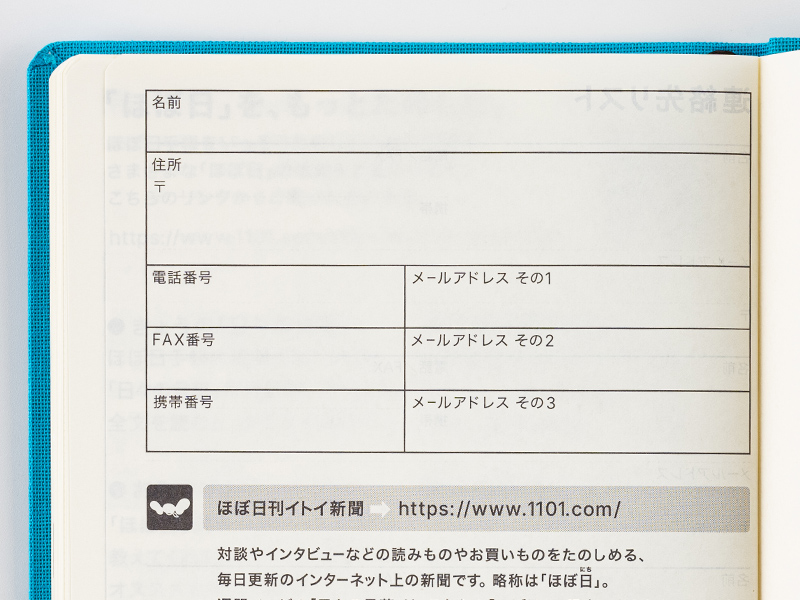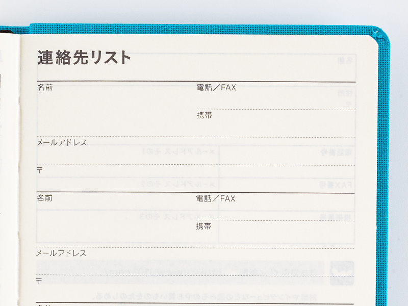 氏名、生年月日、住所、電話番号など自分の情報をまとめて書いておくページです。知られて困るような情報の取り扱いにはご注意を。