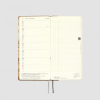 | 記載される内容 | 週番号/六曜(大安、仏滅など)/二十四節気(立春、春分、夏至など)/祝日、記念日など(バレンタインデー、ひなまつり、母の日、父の日など)/月の満ち欠け(週間ページ全てに記載・月間カレンダーに満月と新月のみ記載) 【手帳本体 weeks】の詳細は「全タイプ解説」からご確認いただけます。 |