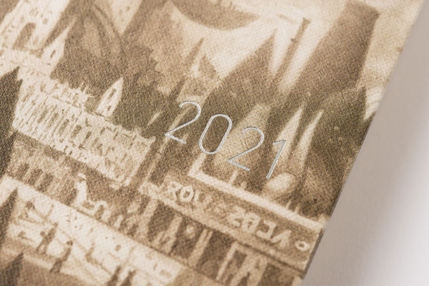 表紙の年号の箔押しの文字は、日々お使いいただくうちにはがれることがあります。強くこすらないようご注意ください。