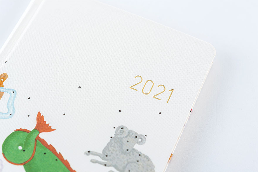 表紙の年号の箔押しの文字は、日々お使いいただくうちにはがれることがあります。強くこすらないようご注意ください。