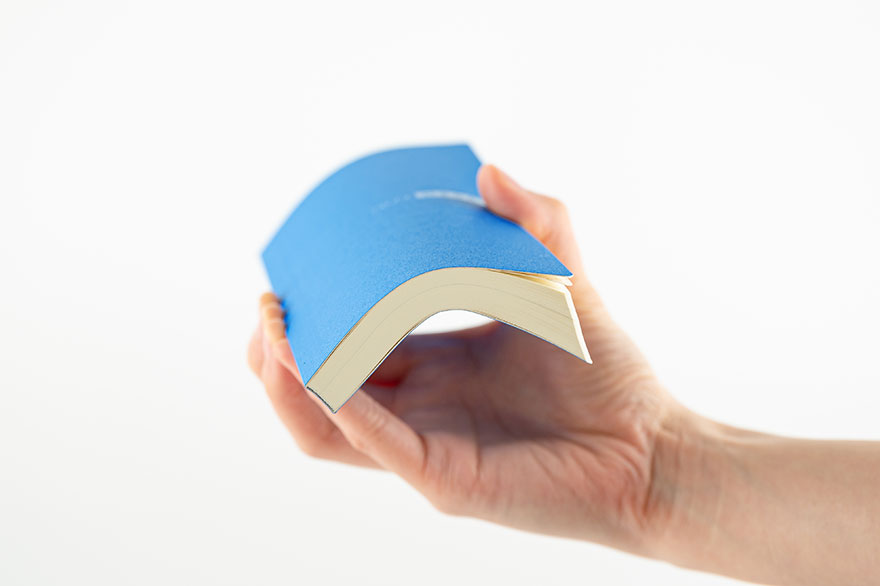 表紙素材の特性上、180度開くためには、手で軽くおさえる必要があります。
