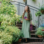 ワンピース ¥26,400(ヌキテパ/パサンド バイ ヌキテパ:03-6427-9945)、バレーシューズ ¥19,800(キャットワース/グラストンベリー ショールーム:03-6231-0213)、