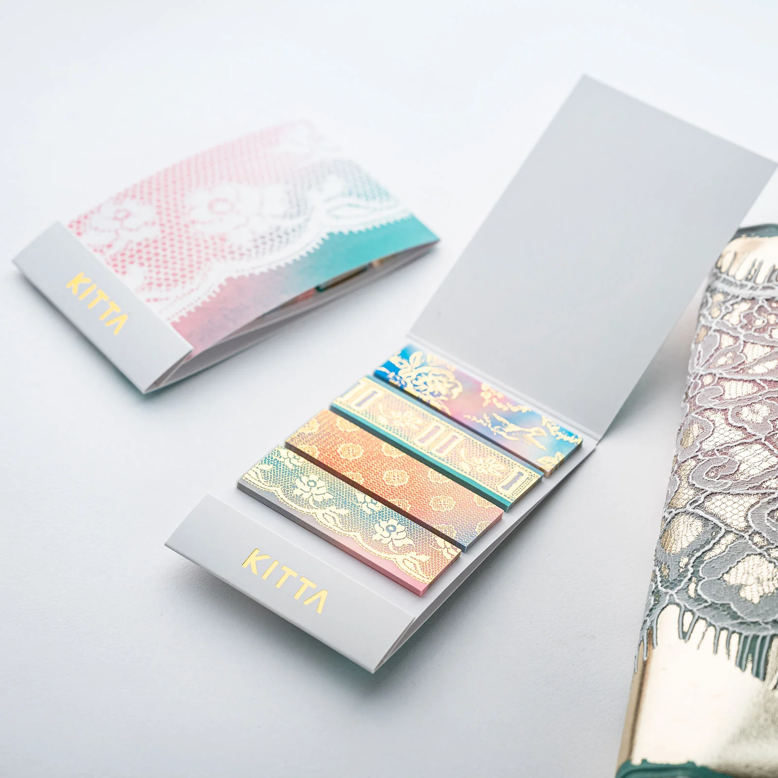 繊細なレース編みのように美しい金色の箔。