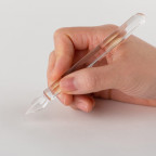 2021年2月販売分の「六角形の硝子ペン 02(すこし太め)」については、ボディのおしり部分がフロスト仕上げになっていません。