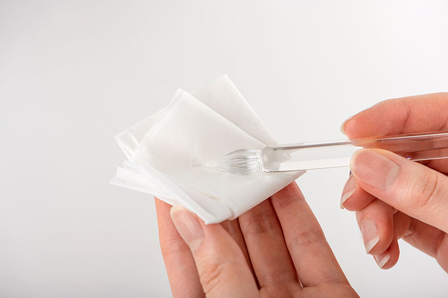 歯ブラシをペンの先端にあてて、インクをかき出すように動かし、