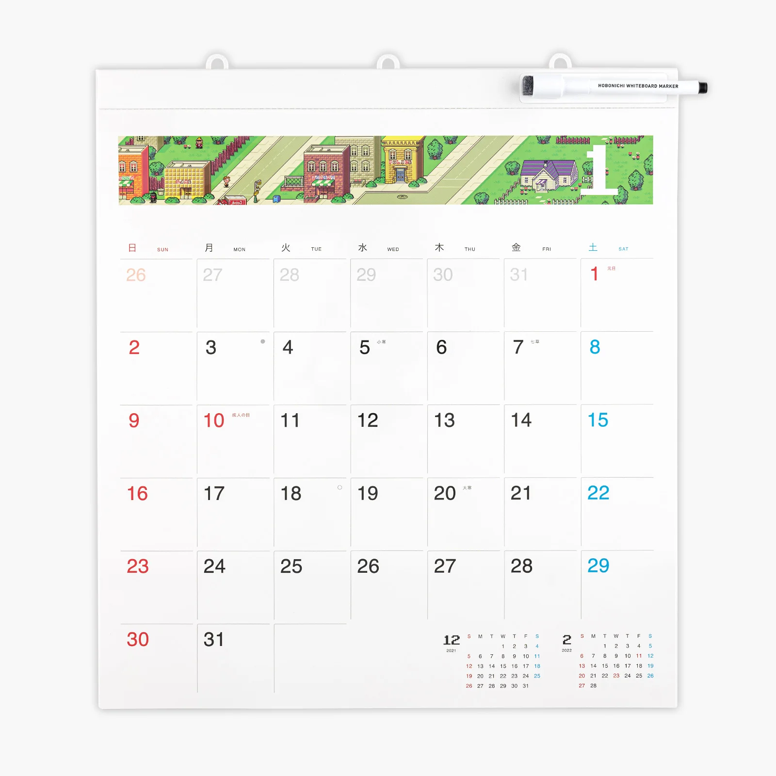 | 記載内容 | 2022年1月~12月 祝祭日 記念日など(バレンタインデー、ひなまつり、母の日、父の日など) 二十四節気(立春、春分、夏至など) 月の満ち欠け メッセージボード(1ページ) |