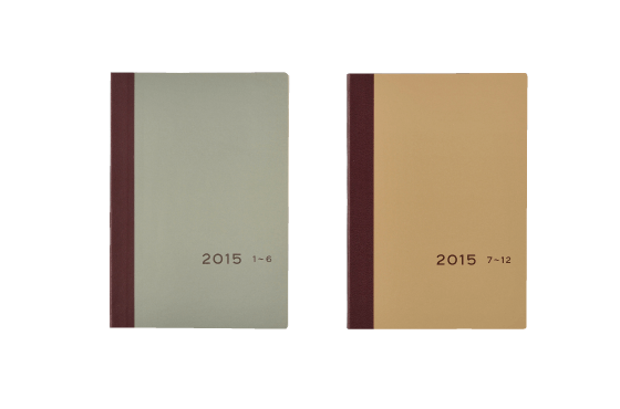 外側のポケットを別の色にした「ツートンカバー」が登場。今でこそおとなしいデザインに見えますが、当時は新鮮な印象でとても人気がありました。ラインナップは全20種。この時期は毎年新しいロゴを制作していましたが、2008年版ではあみぐるみ作家のタカモリ・トモコさんに刺繍で作っていただきました。手帳本体の改良としては、土日と平日のデザインに差をつけたり、月間カレンダーに週番号を追加したりといった細部の調整をおこないました。また「ほぼ日の週間手帳」「ほぼ日の路線図」などオプション文房具のデザインが統一され、全10種の「すてきな文房具」というシリーズに。現在の「TOOLS&TOYS」につながっていきます。この年は1ヶ月分の「無料お試し版」も登場、さまざまなかたに試していただきました。