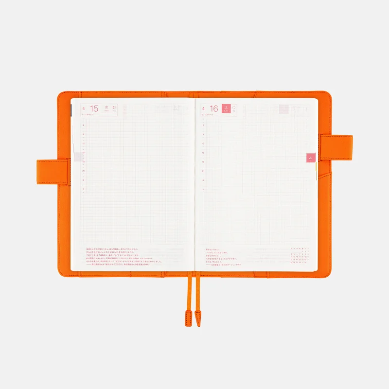 | 記載される内容 | 日番号/週番号(月間カレンダー・週間ダイアリーに記載)/旧暦/六曜(大安、仏滅など)(月間カレンダーに記載)/二十四節気(立春、春分、夏至など)、雑節/祝日、記念日など(バレンタインデー、ひなまつり、母の日、父の日など)/月の満ち欠け(1日ページ全ページに記載、月間カレンダー・週間ダイアリーに満月と新月のみ記載) |
