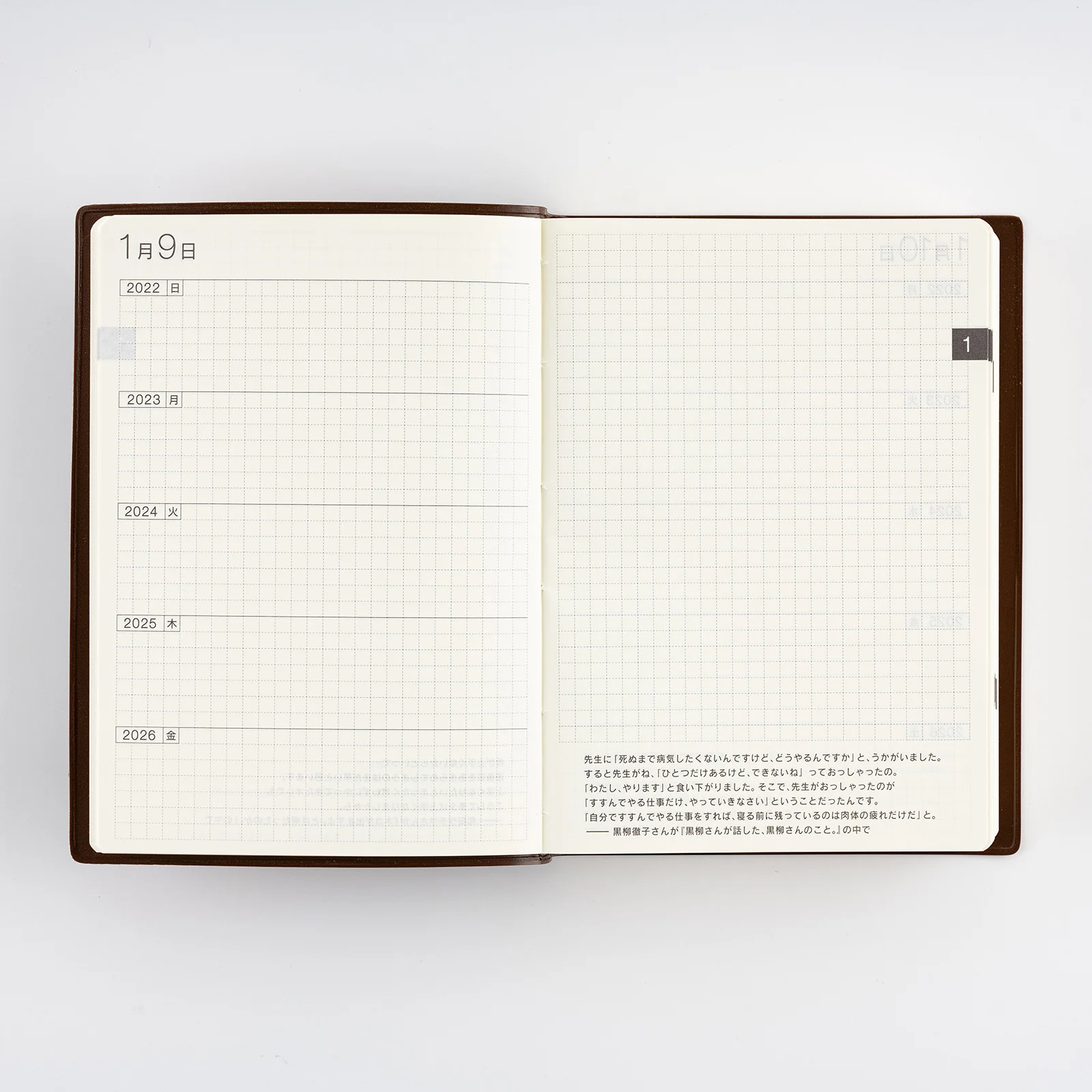 各見開きの左ページには1日ごとの日付と、