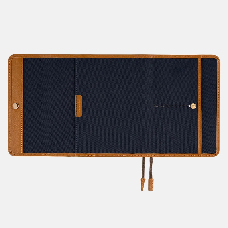 カバーの使いはじめは、ペンホルダー、またはバタフライストッパーの生地や革がかたいため、ペンが抜きさししづらくなっています。
