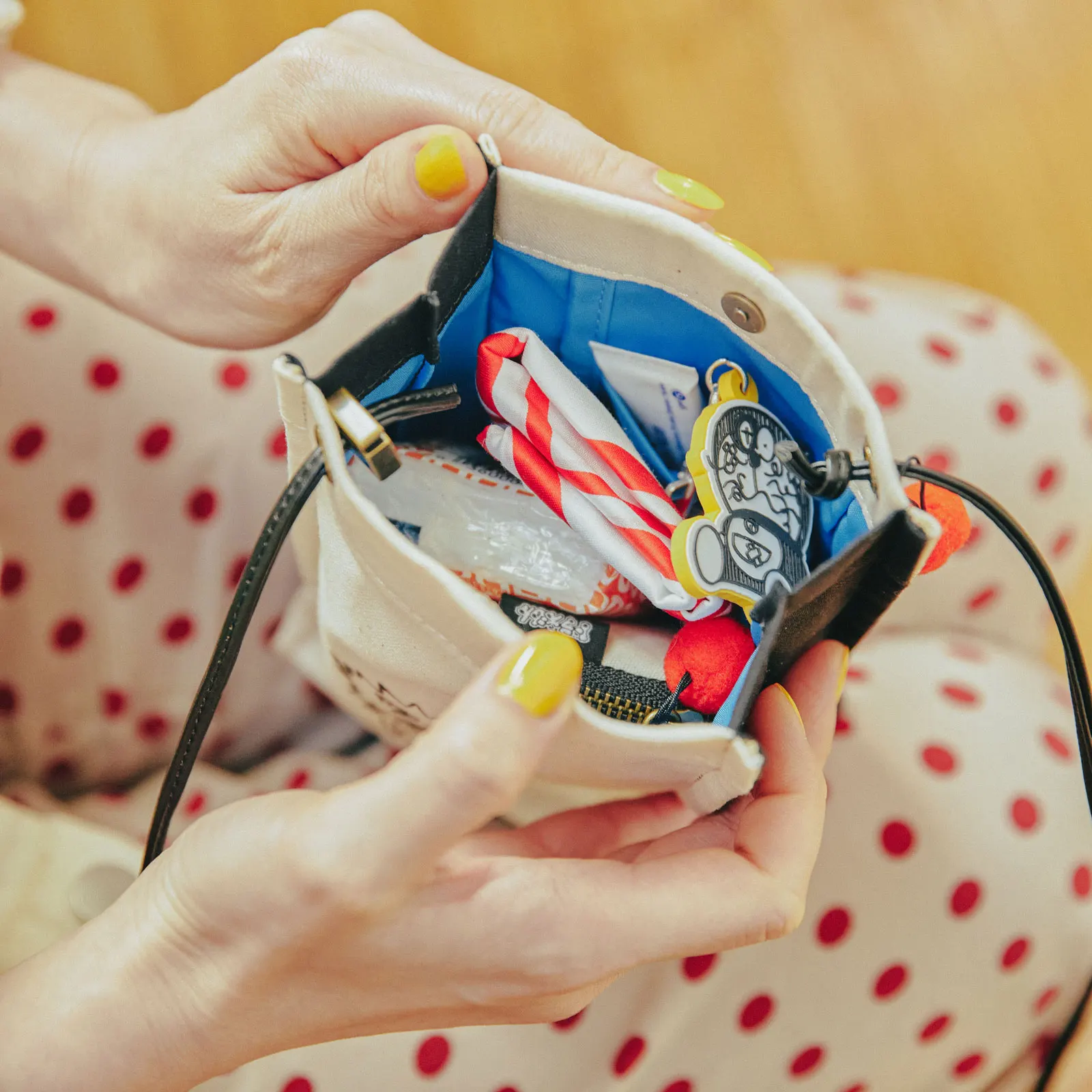 ちょっと近所へ出かけるときのミニショルダーとして。買い物などで帰りに荷物が増えそうなら、小さくたたんだエコバッグを入れておくと◎。