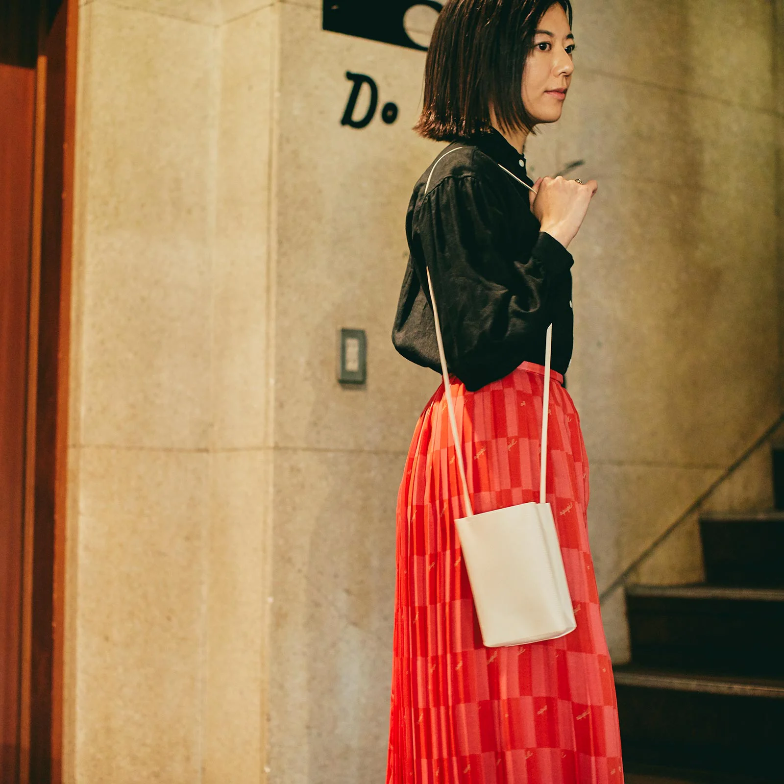 ちょっと近所へ出かけるときのミニショルダーとして。買い物などで帰りに荷物が増えそうなら、小さくたたんだエコバッグを入れておくと◎。
