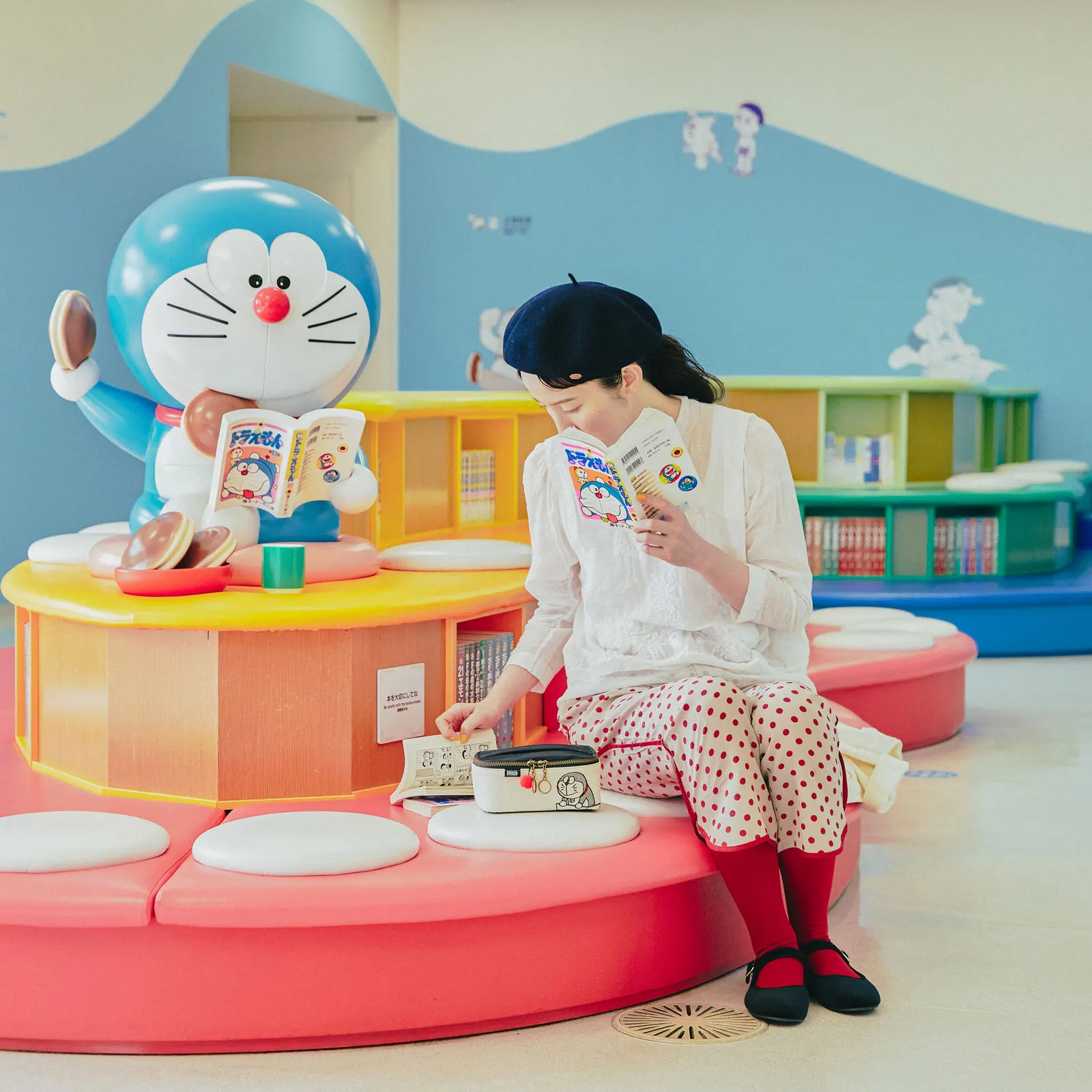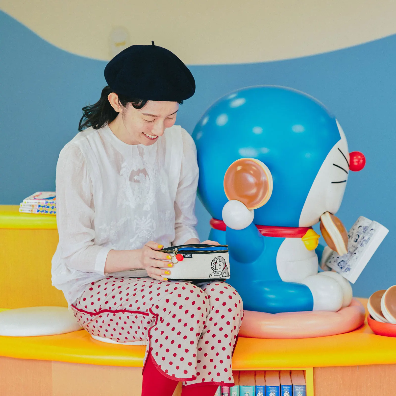 このポーチでは、まんがの中でドラえもんが