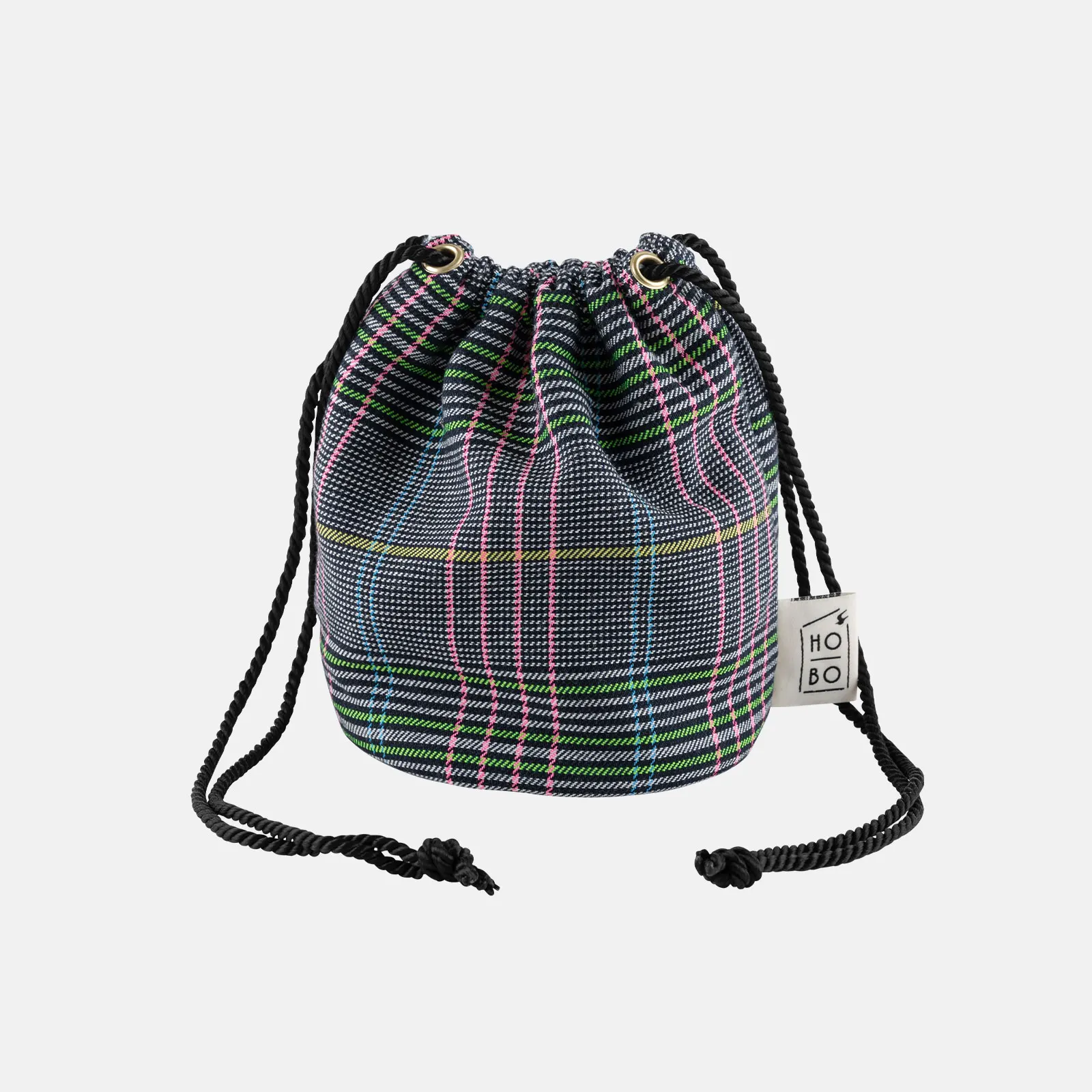 巾着型のポーチバッグ。