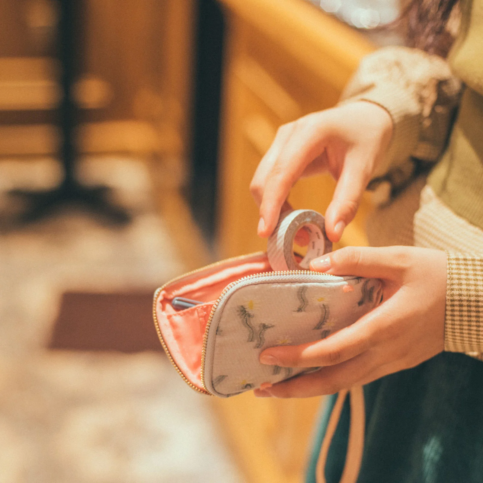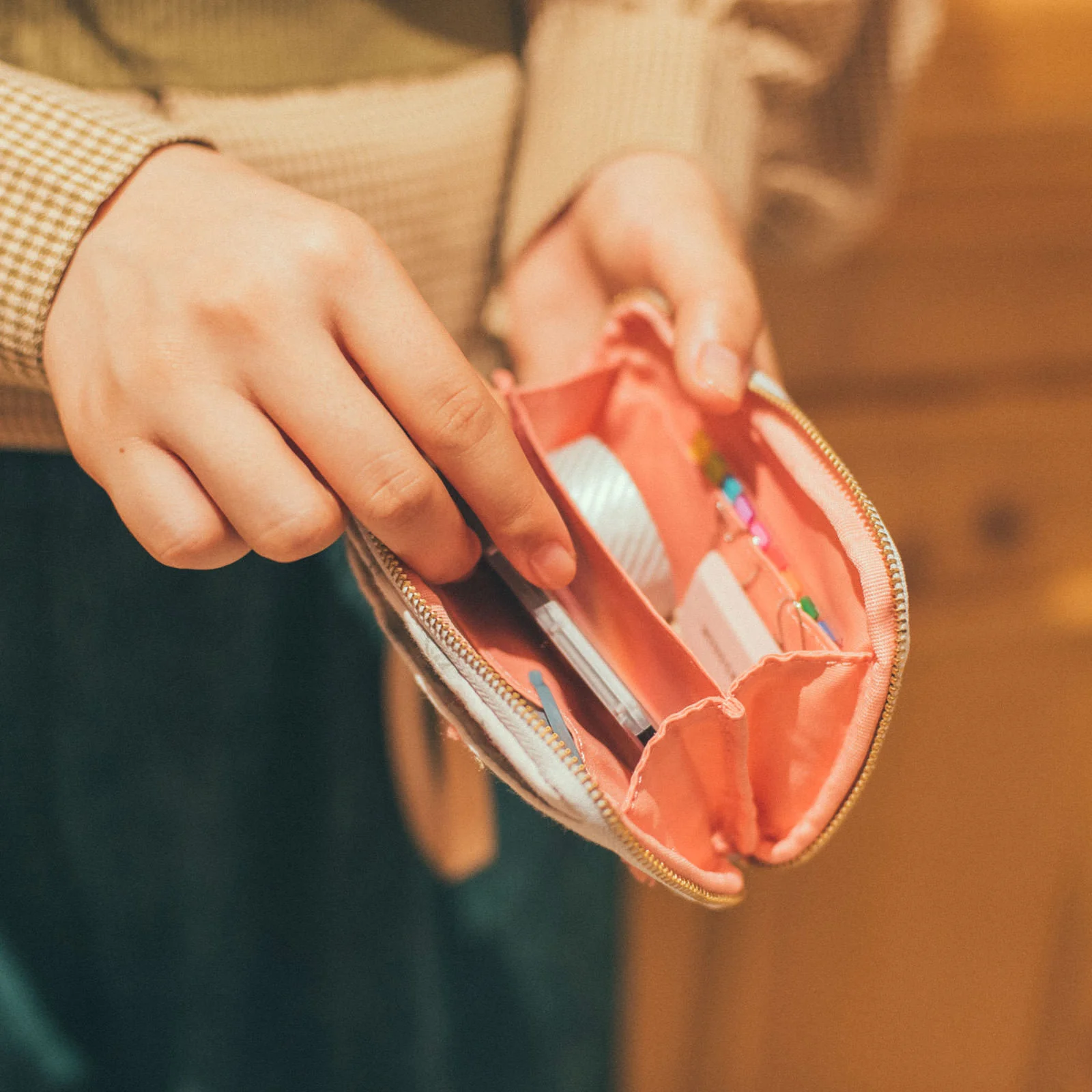 リップにミラー、短いペンやお金といった身の回りのものといっしょに、お気に入りのかわいい雑貨もひとまとめに。開けるたびにときめく、自分だけのポーチに。