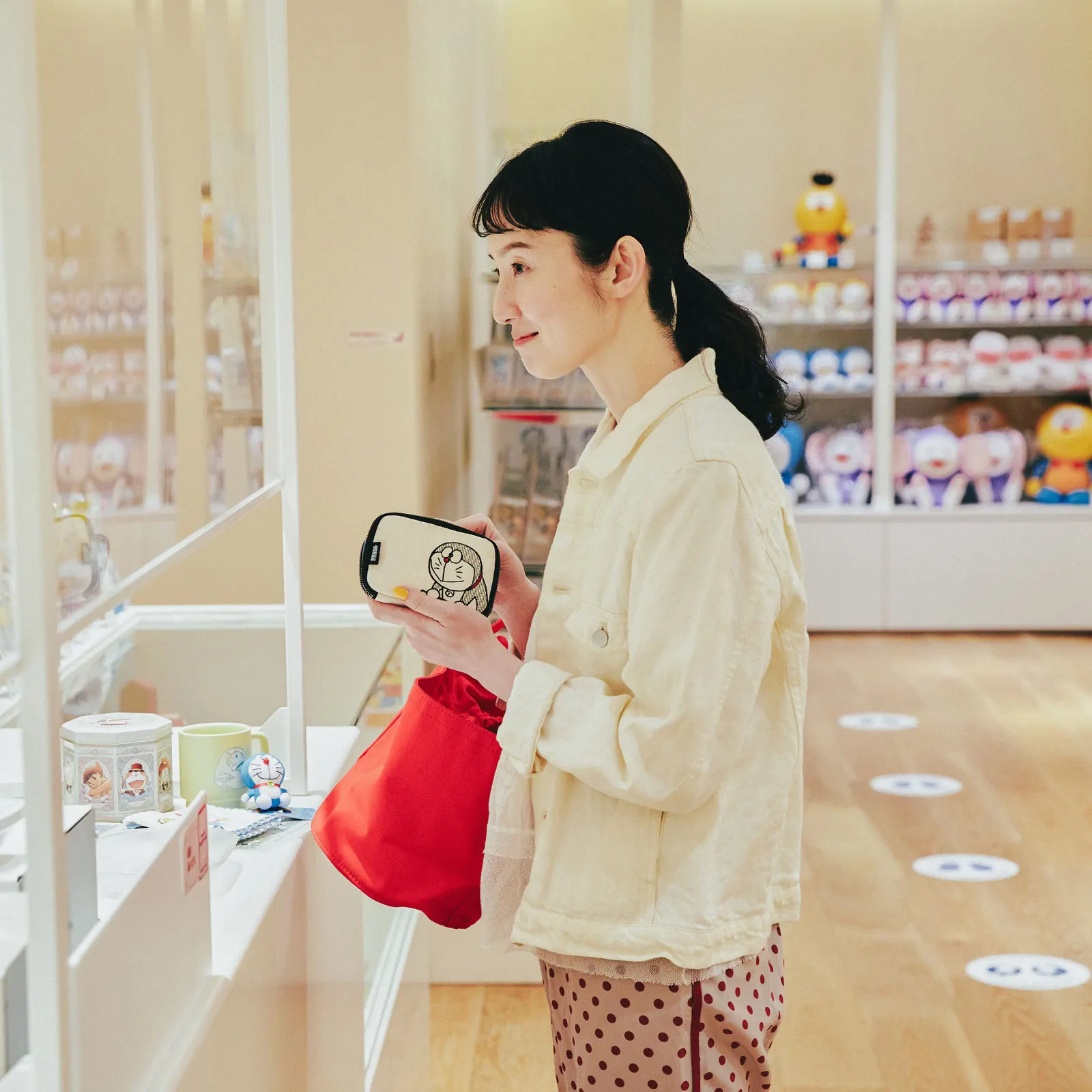ポーチを開くと、内側は鮮やかなドラえもんカラー。