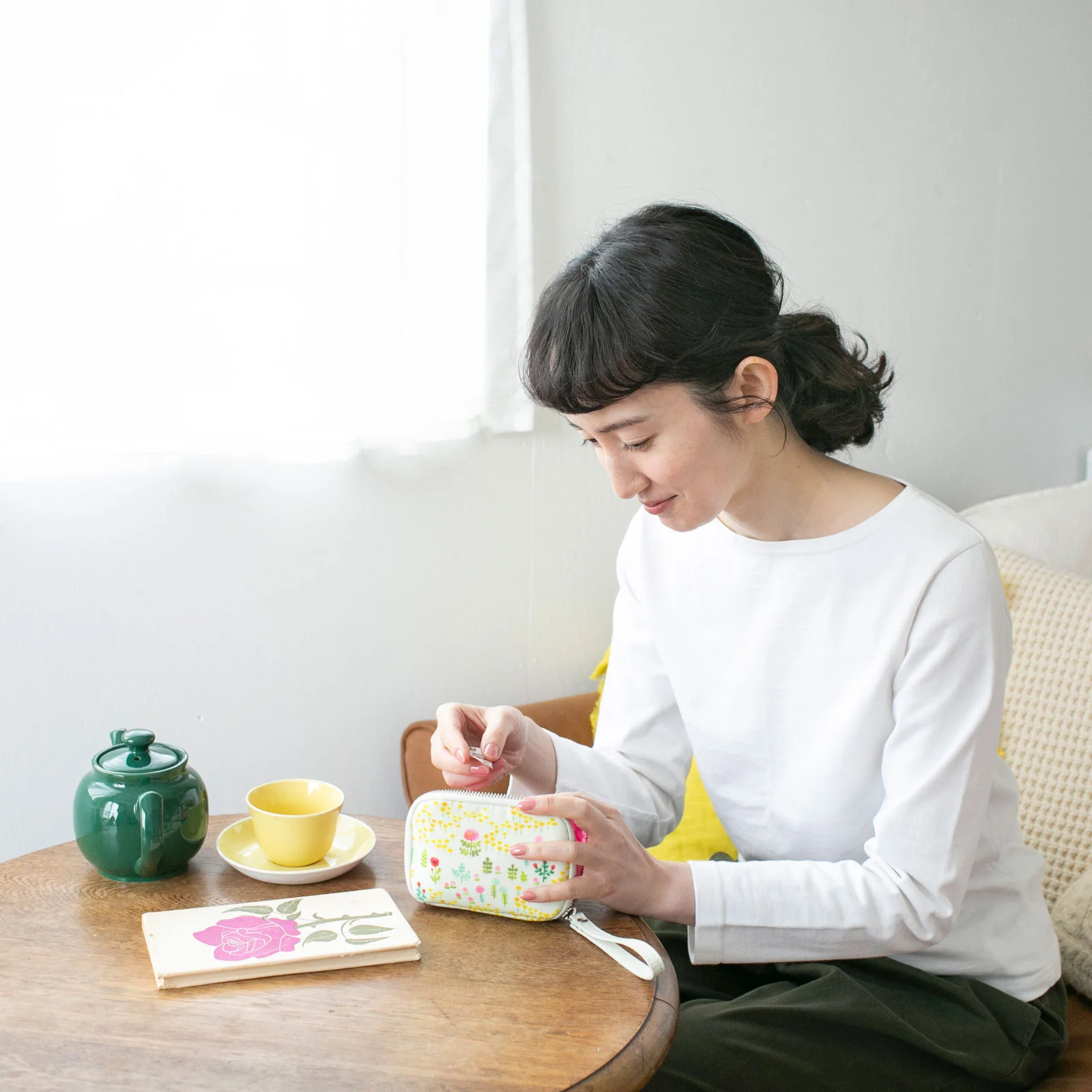 リップにミラー、短いペンやお金といった身の回りのものといっしょに、お気に入りのかわいい雑貨もひとまとめに。開けるたびにときめく、自分だけのポーチに。