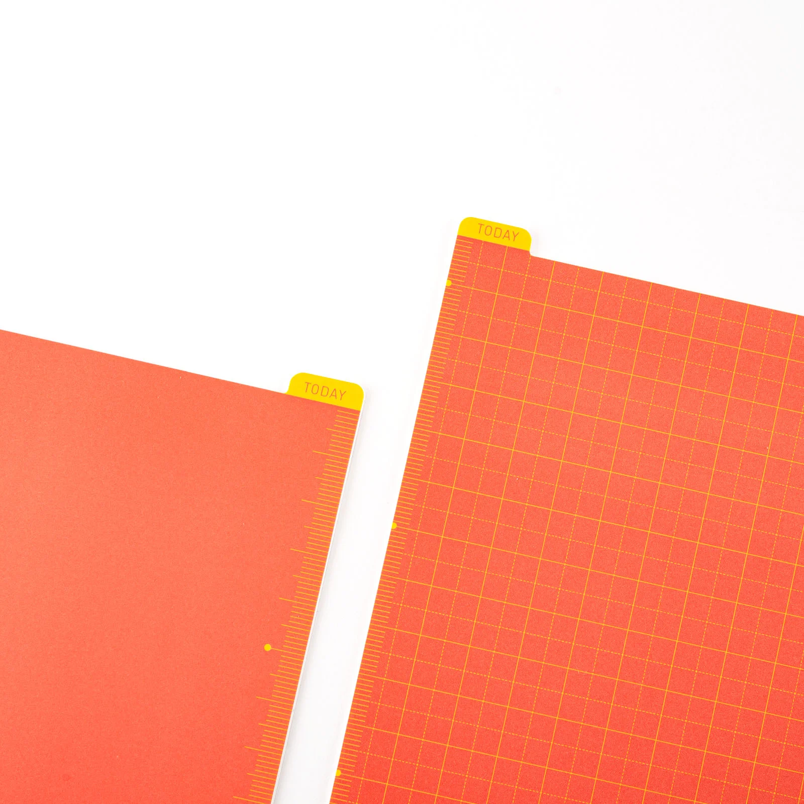 オレンジに近いウォームレッドと黄色を合わせた下敷き