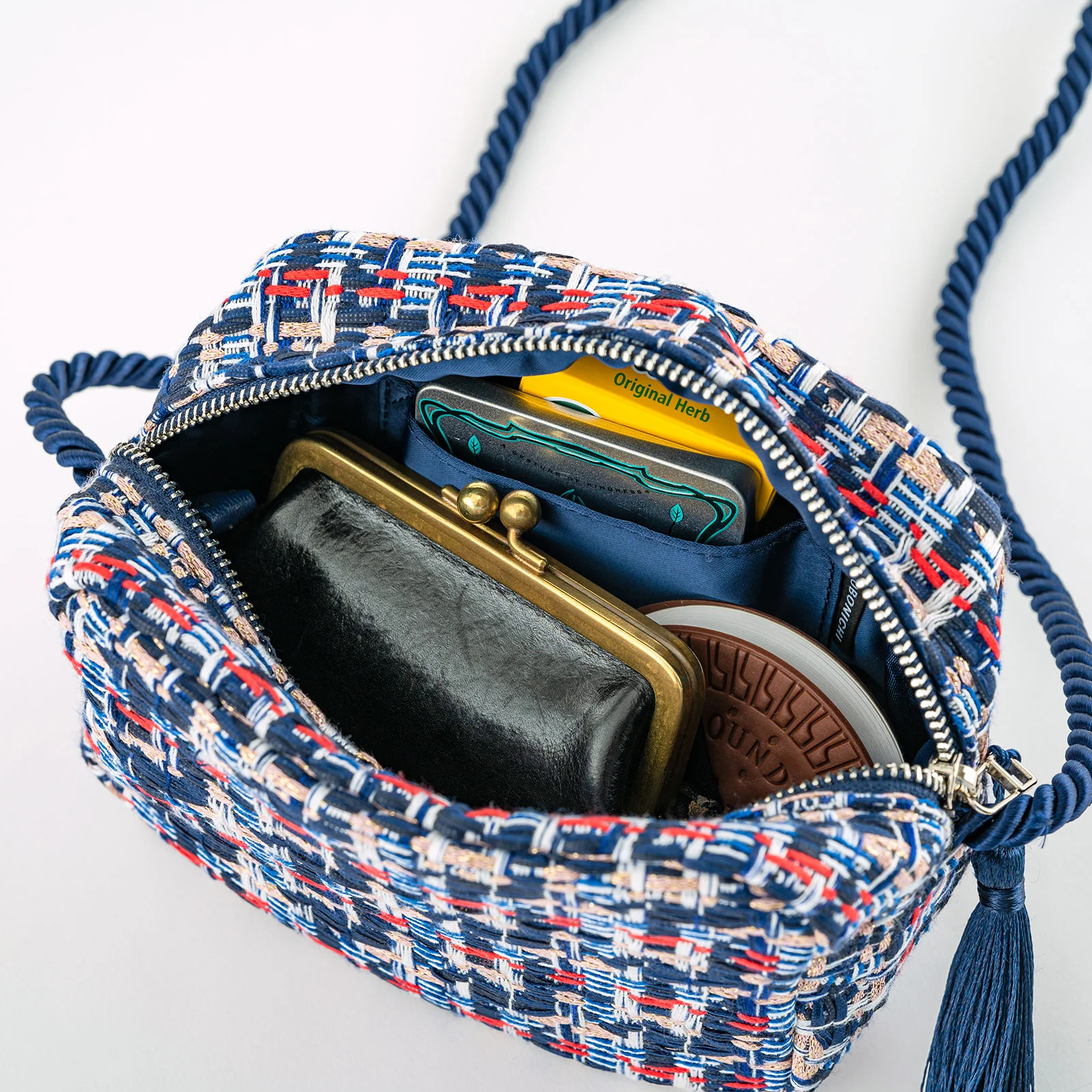 紐にはネイビーのロープが使われていて、