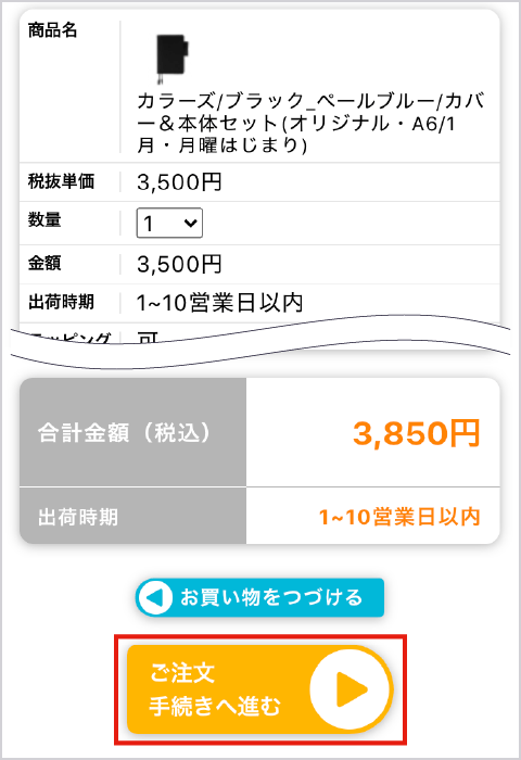 (9月上旬、2月上旬の手帳の発売直後の時期や、再生産アイテムなどは、さらに日数がかかることがございます。出荷時期はすべて各商品ページでご案内しています)