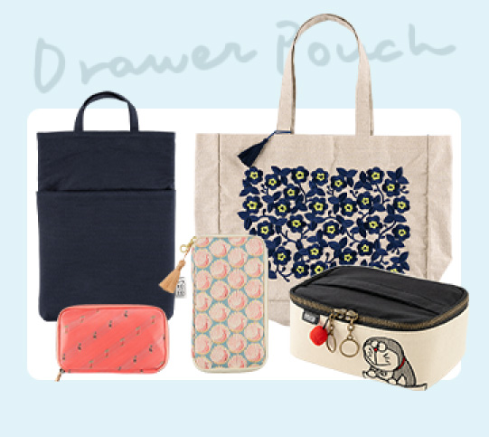 好きなものや大事なものをつめこんだ自分だけの「ひきだし」を、まるごと持ち歩けるようなポーチです。