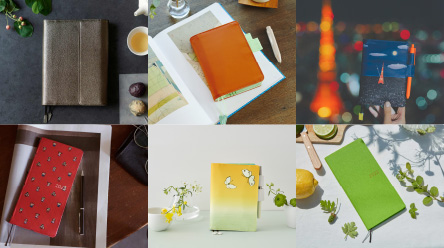1日1ページ、週間、月間ノート、5年手帳。手帳本体のサイズ・フォーマットやカバーなど種類豊富に揃えています。
