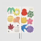 | 記載される内容 | 週番号/六曜(大安、仏滅など)/二十四節気(立春、春分、夏至など)/祝日、記念日など(バレンタインデー、ひなまつり、母の日、父の日など)/月の満ち欠け(週間ページ全てに記載・月間カレンダーに満月と新月のみ記載) |