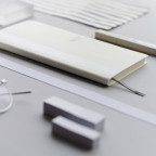 表紙の白いラインはシルク印刷でプリントしているため、インク特有のにおいが残っている場合があります。