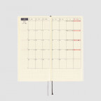 | 記載される内容 | 週番号/月の満ち欠け(週間ページ全てに記載・月間カレンダーに満月と新月のみ記載) ※祝日の記載はありません。 |