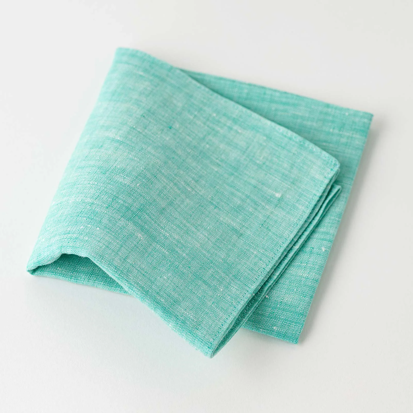 白い経糸に、きれいな緑色の緯糸を折りこんだ
