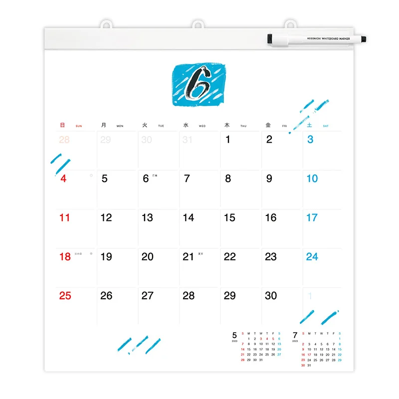 ホワイトボード仕様のカレンダーですので、通常のホワイトボードと同じく、書いてある文字などに手を触れると、字がかすれてしまったり、消えたりしてしまいます。
