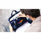PCを持ち運びできるよう、丈夫に作られているクッション素材のケースですが、収納したPCやポケットに入れたスマートフォンやタブレットを衝撃から守るものではありません。