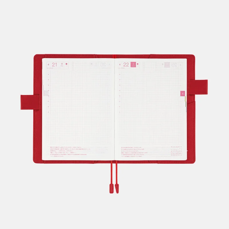 | 記載される内容 | 日番号/週番号(月間カレンダー・週間ダイアリーに記載)/旧暦/六曜(大安、仏滅など)(月間カレンダーに記載)/二十四節気(立春、春分、夏至など)、雑節/祝日、記念日など(バレンタインデー、ひなまつり、母の日、父の日など)/月の満ち欠け(1日ページ全ページに記載、月間カレンダー・週間ダイアリーに満月と新月のみ記載) |