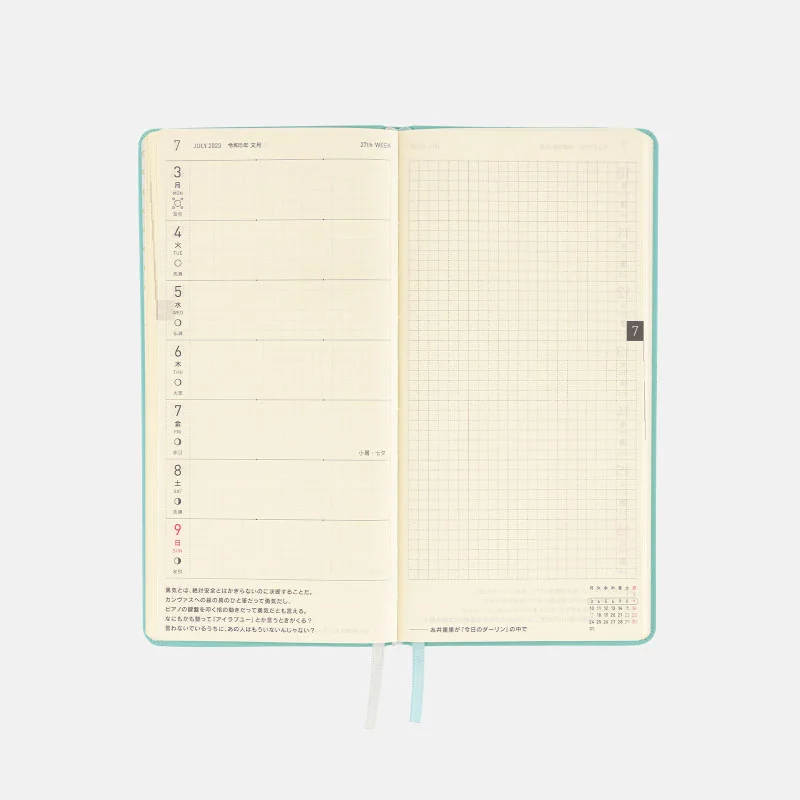 | 紙質・製本 | 薄くて軽く、裏抜けの少ないトモエリバー(手帳専用紙)/糸かがり製本 |