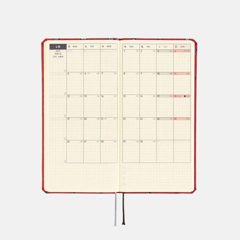 | 紙質・製本 | 薄くて軽く、裏抜けの少ないトモエリバー(手帳専用紙)/糸かがり製本 |
