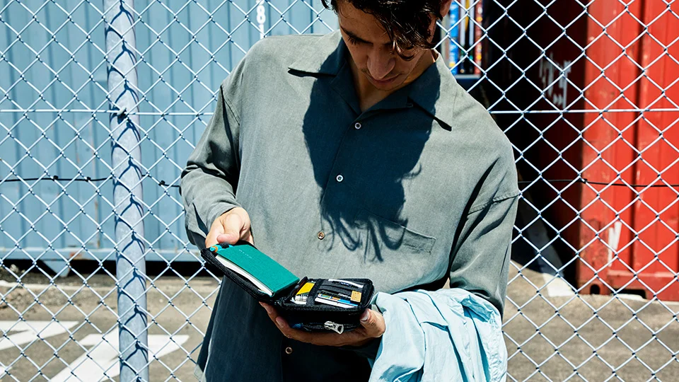 手帳といっしょに文房具や書類、カードなどを持ち運べるように設計されていますが、容量を超える収納はお避けください。