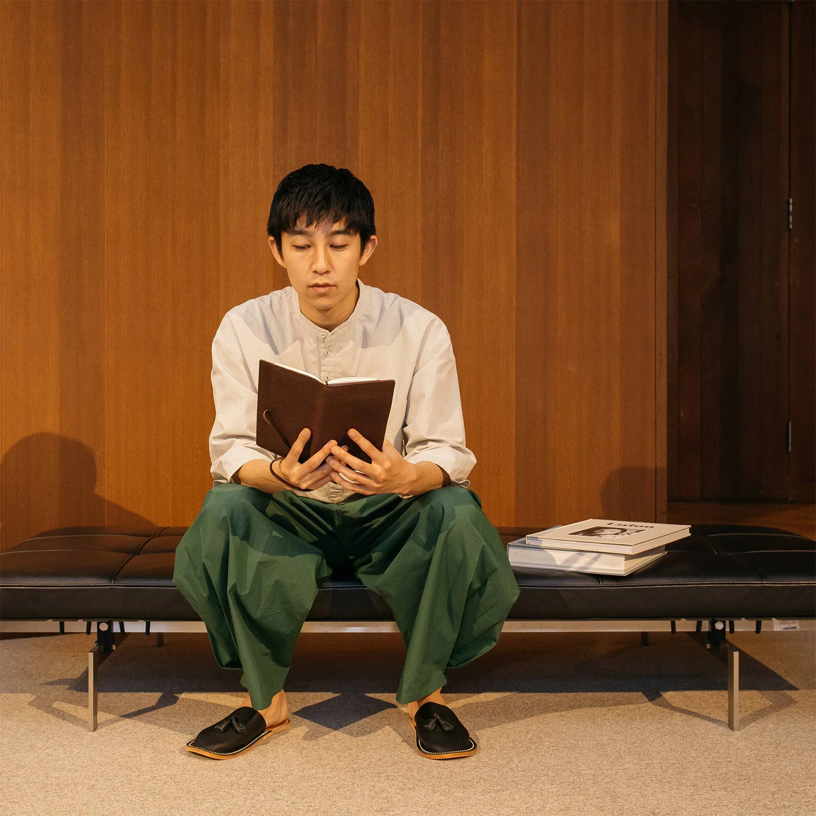 「はじめて」革のカバーを手にする人が