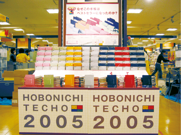 この年いちばんのニュースは、ロフトでの販売がはじまったこと。手にとって見ることができるようになり、ぐっと買いやすくなりました。きっかけは、ロフトのウェブサイトで「オープンバイイング」という取扱商品の公募制度をおこなっていたこと。担当のほぼ日乗組員が「500冊くらい取り扱ってもらえたら」と打ち合わせに出かけたところ、ロフトからの要望はなんと15,000冊。最終的に17,000冊を納入しました。以降、ほぼ日手帳は長年にわたり、ロフトの手帳売り場売上No.1を誇っています。またこの年、ナイロンカバーの使い方の幅を広げる「カバー・オン・カバー」が登場。カバー自体の改良としては、チケットポケットの追加、バタフライストッパーの位置調整などがおこなわれています。