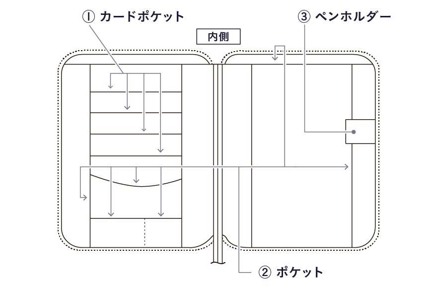 | その他 | 【手帳本体 カズン】の詳細は「全タイプ解説」からご確認いただけます。 |