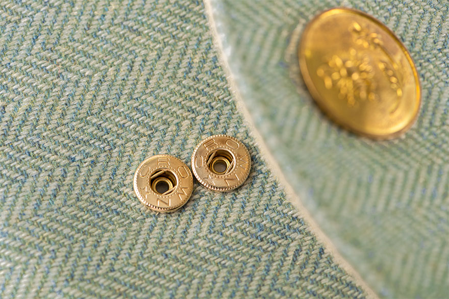 ボタンは強く引っ張ったり、過度な力を加えると、取れたり、変形する恐れがございますのでご注意ください。