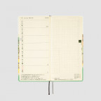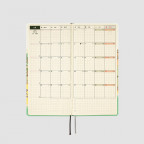 | 記載される内容 | 週番号/六曜(大安、仏滅など)/二十四節気(立春、春分、夏至など)/祝日、記念日など(バレンタインデー、ひなまつり、母の日、父の日など)/月の満ち欠け(週間ページ全てに記載・月間カレンダーに満月と新月のみ記載) |