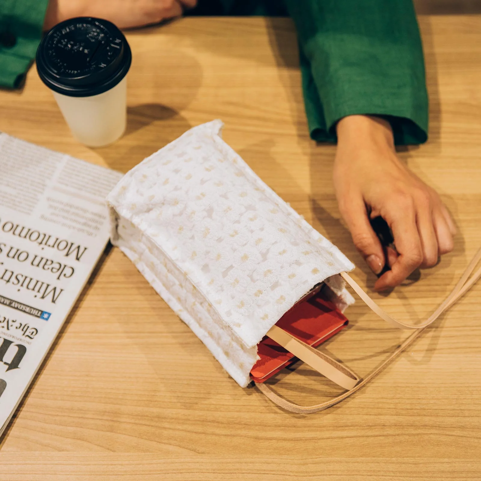 ショッピングに行くときのハンドバッグ代わりとしても重宝。スマホ、財布、ハンカチやハンドクリームなど、持ち物がコンパクトにまとまります。