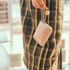 カードやお札、小銭をきっちり分けて入れておけるお財布として、お買い物のときに活躍します。おうちのカギやリップも、いっしょに持ち歩けます。